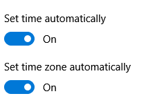 - Turn on both Set time automatically and Set time zone automatically.