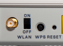 - Check its back side and find the buttons shown in the following screenshot (their shape and size may depend on the router model and brand but the principles are same)
