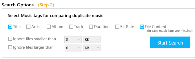 12. Now click on Start Search to initiate the search for duplicate music files.