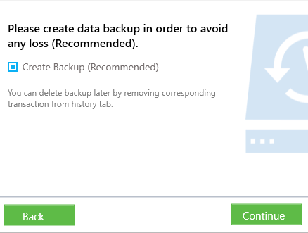 18. Create a backup of the files if necessary. Next, Continue to proceed to the final phase.